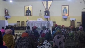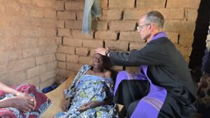 Luego esta señora se casó con un musulmán, y devino musulmana por más de treinta años. Pero después de que muriera su esposo, se casó con un pagano, que luego de algunos años, también murió. Y ahora pedía entrar en la Iglesia Católica. Luego de que la catequista fuera varias veces a su casa para darle un poco de formación católica, el día de hoy pude ir junto con la catequista, para que haga su profesión de fe católica, se confiese, reciba la Primera Comunión, la Confirmación, y la Unción de los enfermos.