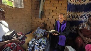 El segundo caso es también muy impresionante. Nos despedimos de esta primera casa, y fuimos muy cerquita a otra casa donde nos esperaban para bautizar a otra señora, a quien se la veía mucho más mayor que la anterior, y con su salud muy endeble. La casita donde estaba era de una de sus nietas, según lo que pude entender. Una casita muy humilde, apenas tres ambientes de tres por tres metros cada uno. Piso de tierra y muros de ladrillos cocidos, y pegados con barro. El techo de chapa, no muy elevado, de tal forma que se lo puede tocar con la mano. En el ambiente del medio, que hace de entrada a la casa, la sentaron en el piso, apoyada contra la pared, y allí entramos todos: dos catequistas, cuatro mujeres de la familia, y el sacerdote. Es admirable cómo se sientan en cuclillas, y en un espacio muy pequeño todos pueden estar bien sentados.