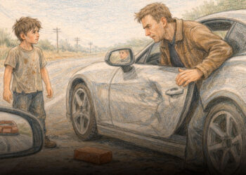 Un niño de diez años estaba parado al costado de la carretera, tratando de hacer señas a los coches que pasaban para que se detuvieran....