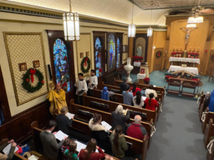 Únicamente Dios lo sabe, y solo la Iglesia tiene autoridad para afirmarlo, pero en el caso de que el P. Segundo Llorente esté en el cielo -al menos a mí me gusta pensarlo así-, atribuimos también a su intercesión este don de la Providencia. Comenzar la Adoración con 40° bajo cero y algunos días hasta 50° bajo cero, necesariamente evoca al que fue vicario de esta parroquia hace 60 años. De hecho, hace un par de días supimos por un biólogo que nos invitó a cenar, que en lo que va de los últimos 100 años, las temperaturas más bajas registradas en Fairbanks se dieron cuando Llorente comenzó su ministerio aquí. Parece que ahora está enviando una señal… porque la gente está comentando que hacía 60 años que no hacía tanto frío como en esta Navidad.